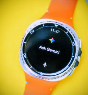 ساعتين Wear OS بجانب بعضهما البعض، واحدة مع Gemini والأخرى مع Google Assistant.